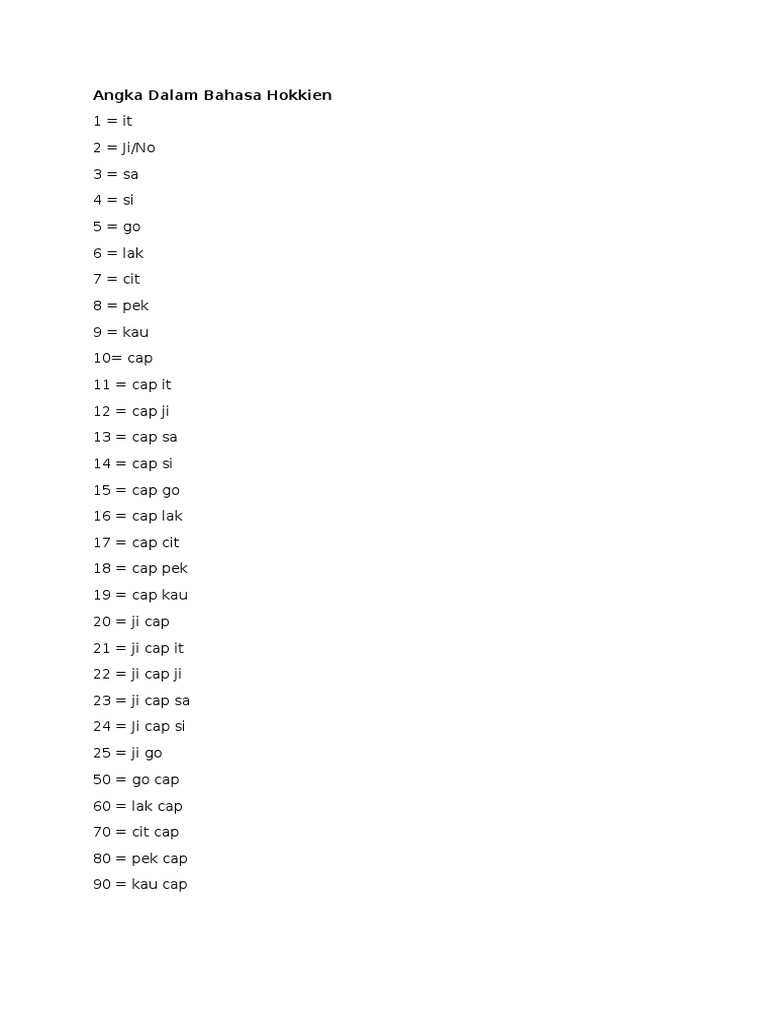 Pertama Anda bisa mencari referensi terlebih dahulu. Share your videos with friends family and the world. Hal-hal yang perlu perhatikan ketika menyatakan angka dalam bahasa hokkien adalah.