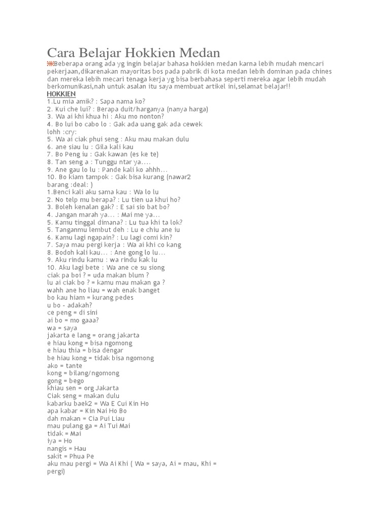 . We are a HRDC registered training centre with Human Resources. Kata-kata dalam bahasa Hokkian kali ini saya akan menterjemahkan dari Bahasa Hokkien ke Bahasa Indonesia. We Do All the Preparation for you.